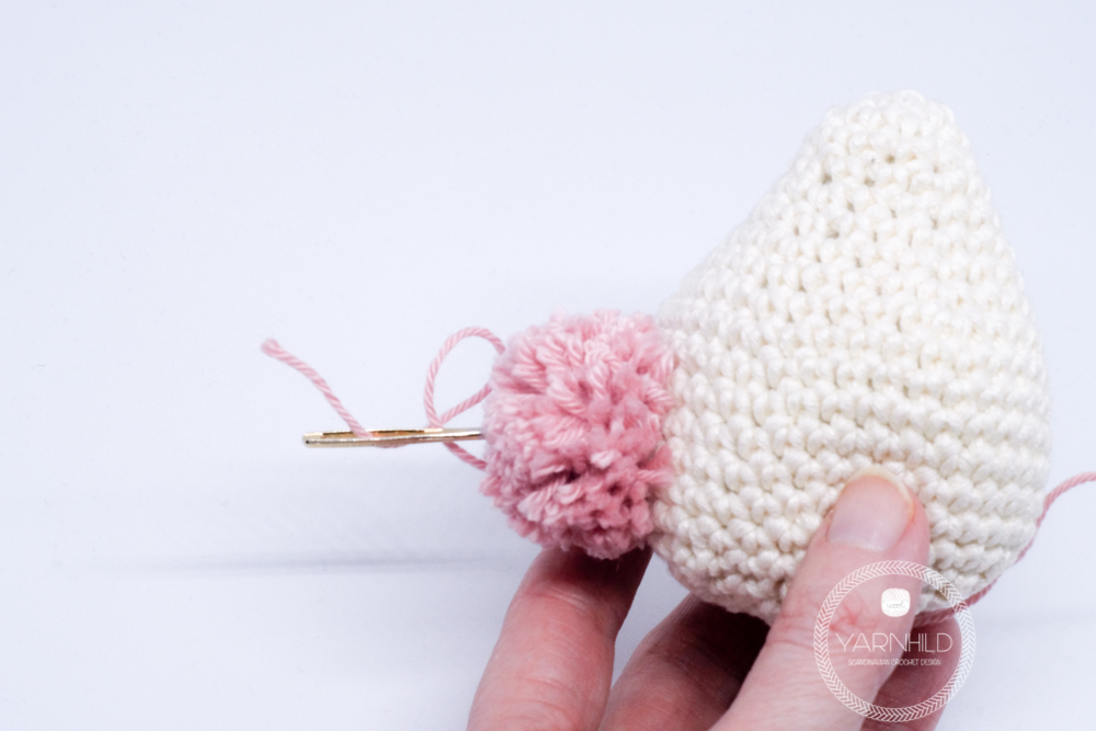Cut the yarn, weave in ends and sew the hole closed.